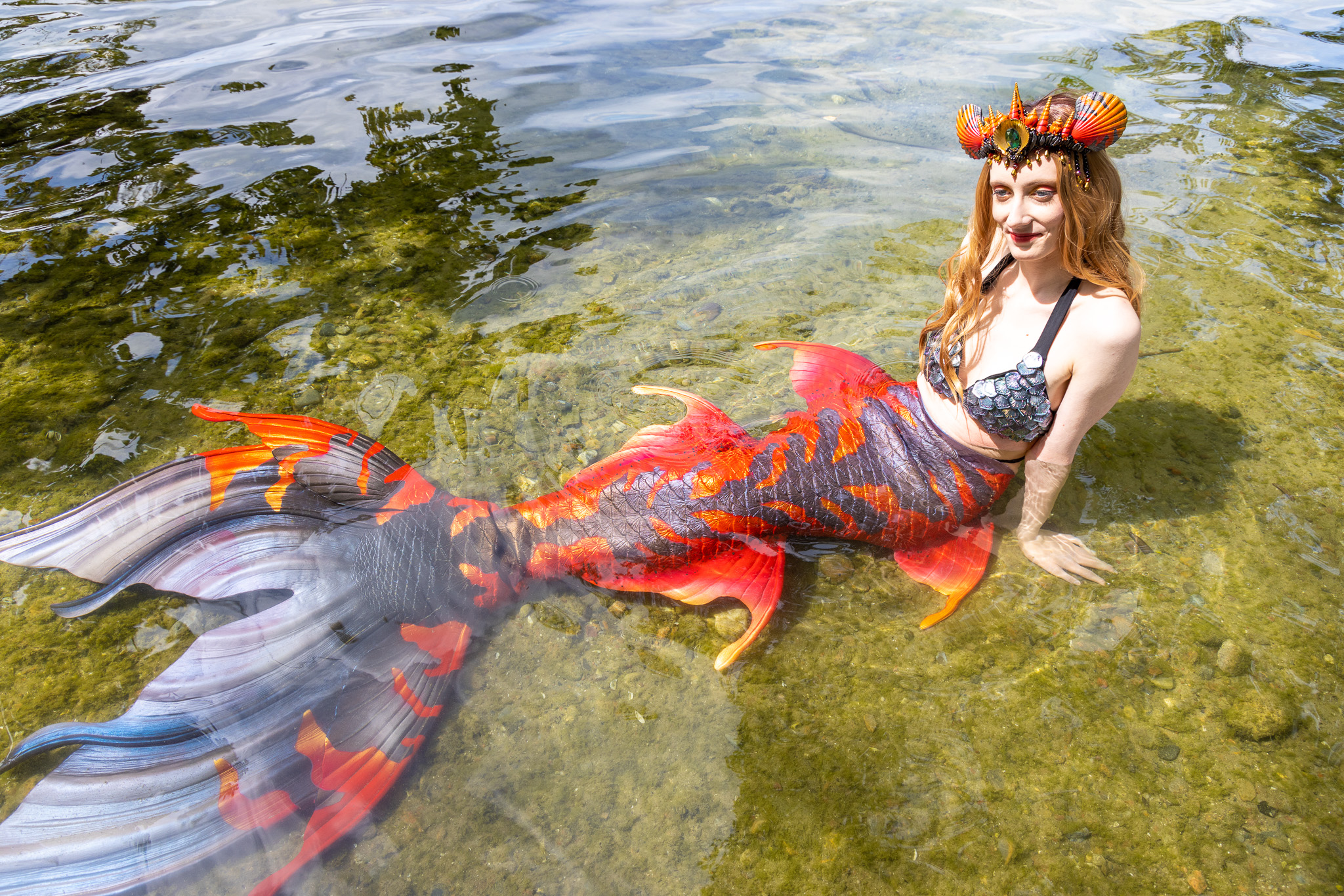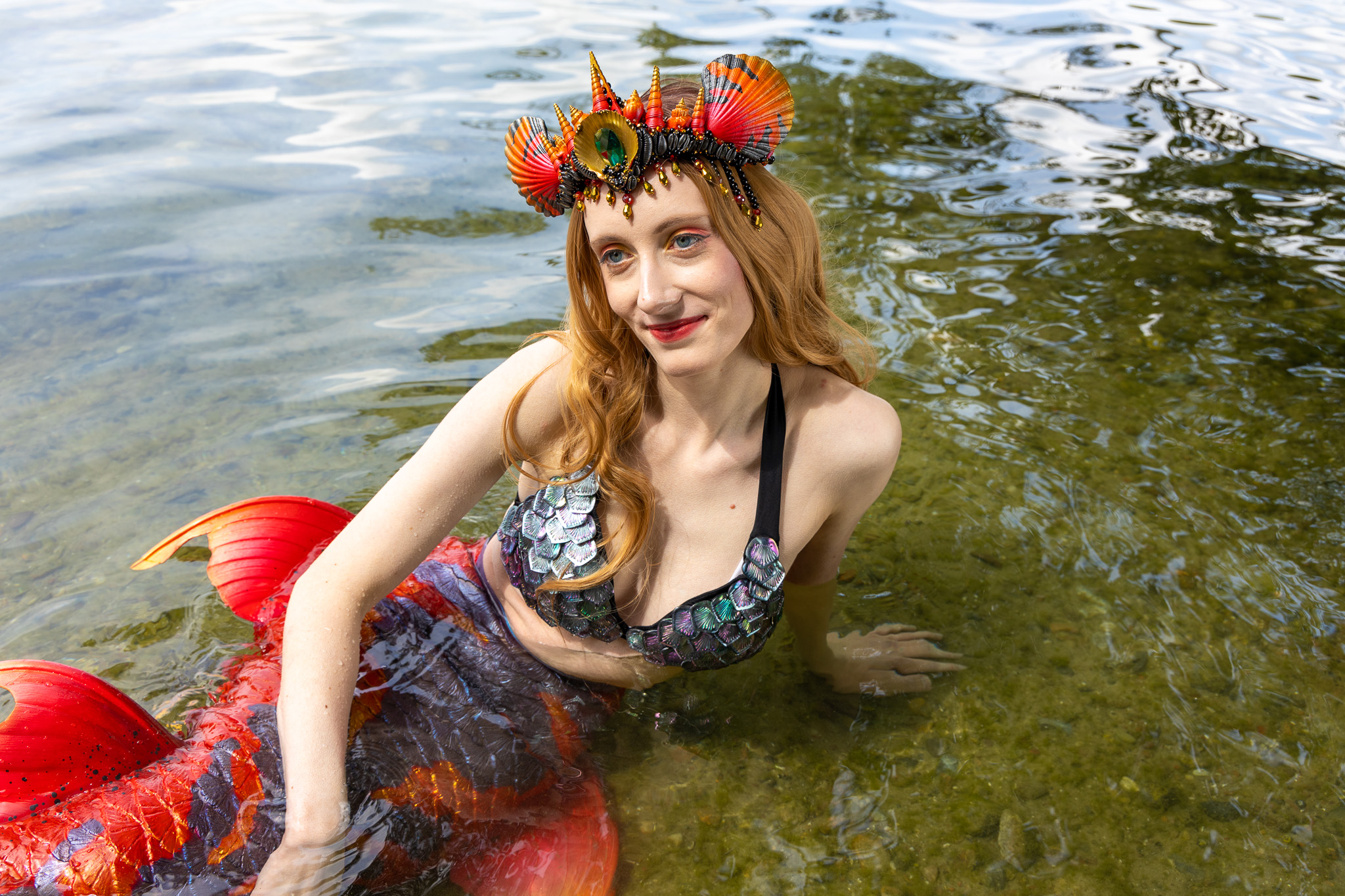 So gegen 13 Uhr haben wir dann eine für uns gute Stelle gefunden und haben mit den Vorbereitungen fürs Shooting begonnen. Christina (Mermaid) war schon soweit geschminkt, sie musste nur noch ihre teure Silikonflosse, die Perücke und die Krone aufsetzen.
